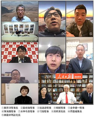 新型コロナウイルスの感染拡大により、創刊9周年を迎える本誌は例年のような大規模な記念イベントは開催せず、藤原洋理事長の提案により、新しい形式の理事会を開催し、「アフターコロナ時代」の新しい中日ビジネスのあり方等について討議した。